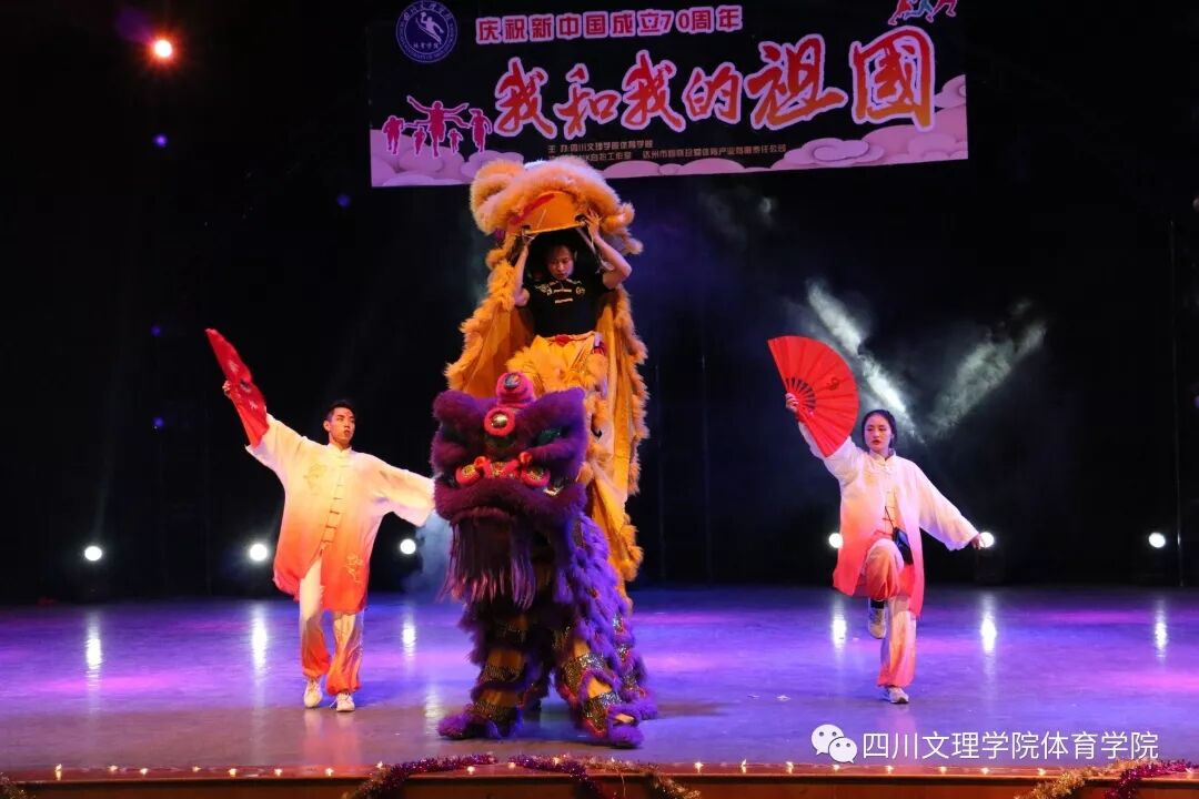19:00整,学院党总支王兆忠书记代表学院党政致开幕词,舞蹈、小品、武术、健美操、歌曲等节目精彩上演。歌曲串烧《我用青春,告白祖国》用嘹亮的歌声表达了学子珍习韶华、建设祖国的决心;小品《时光艺术团》以幽默搞怪的舞姿,让观众领略时代的进步;微话剧《我的体育梦》生动体现了体育人对体育梦想的追求与坚持;舞蹈《梦回青舞》、《One ,Two,There,Four》、《爵士棍》让观众随着优美的旋律,感受到了青春的活力。《体密秀》秀出了体育学子美与力、勤奋与刻苦;跆拳道《竹简武》、武术《精武忠魂》展现了学子精湛的专业技能。两个多小时的晚会在合唱《我和我的祖国》中落下帷幕。