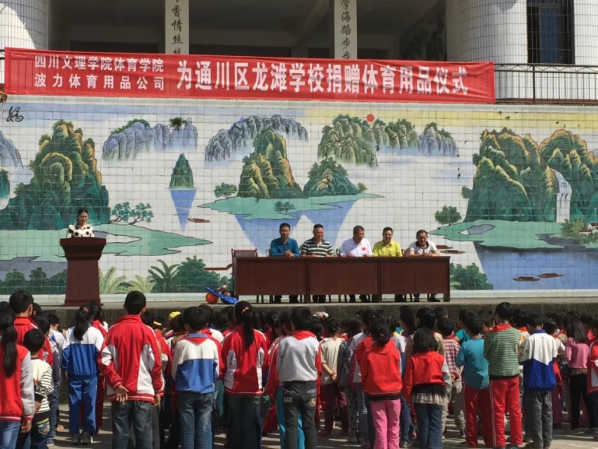 2015年10月15日上午,金年会官网联手达州市波力体育用品有限公司,向通川区龙滩乡中心校捐赠了一批体育器材。