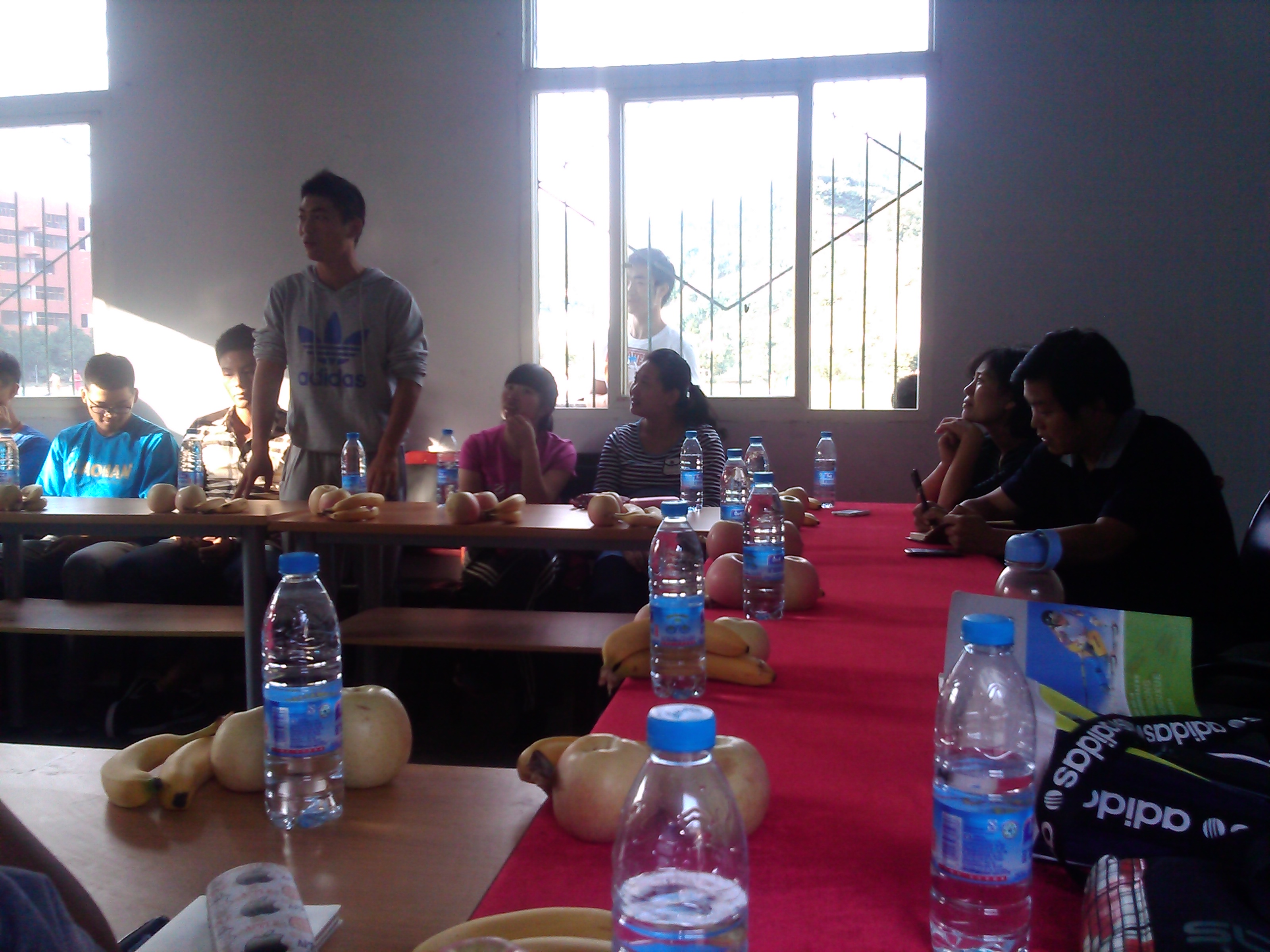 座谈会分为三个阶段进行:新生自我介绍、各位领导讲话、自由发言讨论。金年会官网领导老师对本次座谈会十分重视,在会上对每位同学的学习、生活表示亲切的问候。会上气氛十分活跃,同学们也能够敞开心扉与各位领导老师沟通。在座谈会进行中,董主任详细的讲解了同学们在进入大学后应该怎样学习,如何明确自己的目标与方向,树立正确的人生观、世界观。佘书记鼓励省外同学们要多与本地同学共同学习,共同进步,入乡随俗,尽快适应大学生活,发扬我们体育学生能吃苦耐劳的精神,将这里当做第二故乡,让自己的梦想从这里起航。