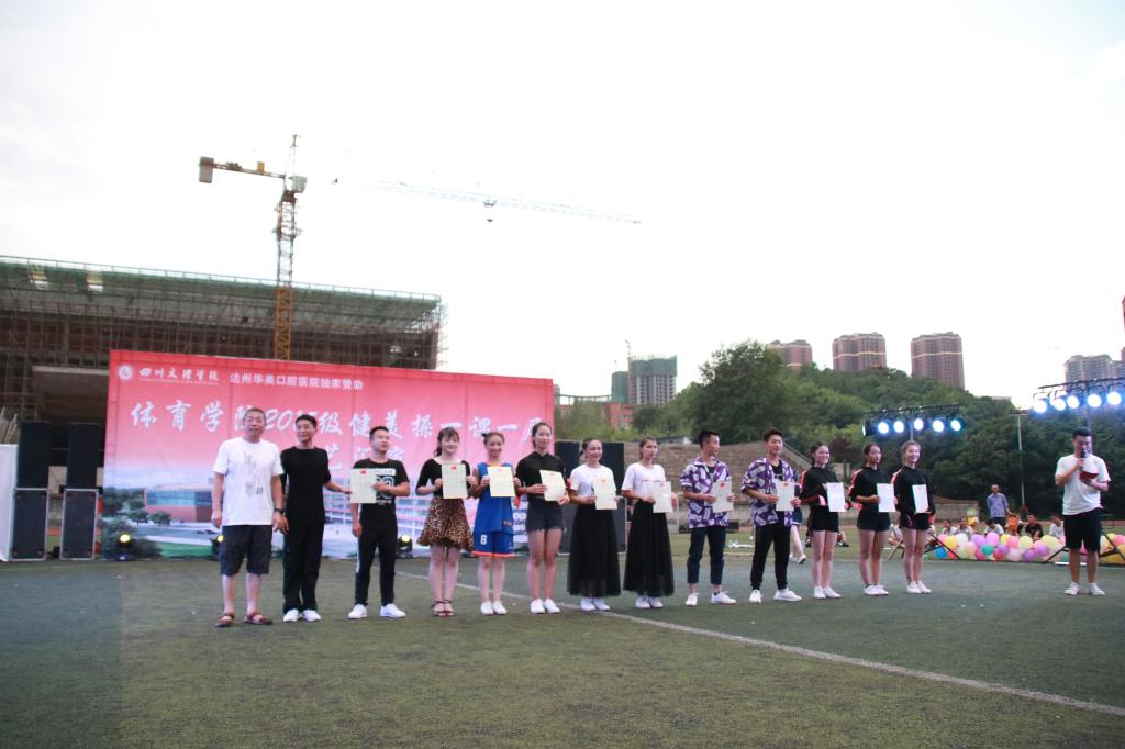 在本次文艺汇演中,学院2015级和2017级健美操班的同学们以饱满的热情和专业的竞技精神完成了所有节目的表演。在表演中,健美操班的同学们有幸邀请到学院领导为他们颁奖。有奖竞答环节也让前来观看的同学热情高涨。晚会最后,此次一课一展的指导教师唐绪明对此次文艺汇演进行了总结发言,他对健美操班同学们的努力和付出表示肯定,并希望同学们在接下来的学习和工作中能够不忘初心,发扬健美操的竞技精神。