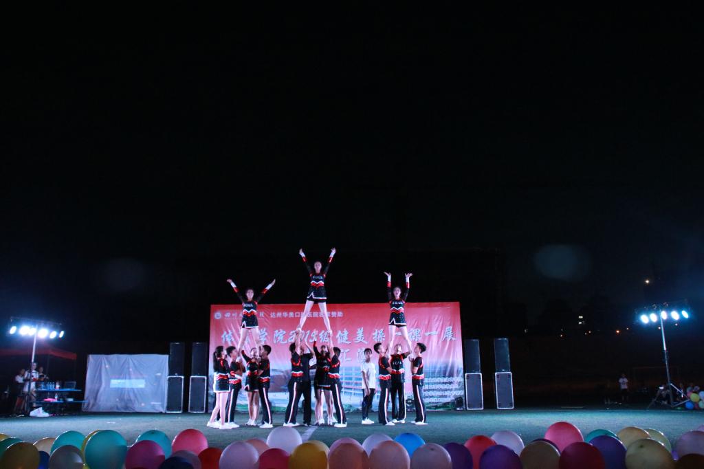 6月27日19:30,金年会官网在田径场开展了2015级健美操一课一展文艺汇演。学校人事处张皓处长、教务处曾宪文副处长、金年会jinnianhuicom教师及400余名学生共同观看了此次演出。