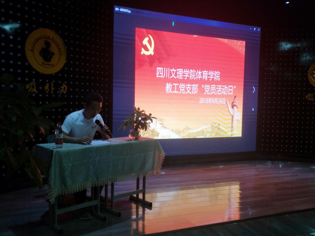2018年9月26日下午17:00,金年会官网教工党支部在吸引力健身中心会议室,召开了党员活动日学习活动。本次活动由学院党总支书记佘涛主持,全体党员参加了学习活动。