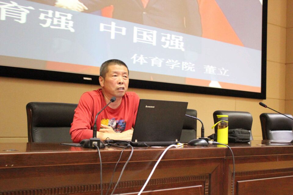 董立教授结合多年体育实践经历和丰富的人生经验为大学生爱上体育、终身体育指明了方向、坚定了信心,让在座师生受益匪浅。