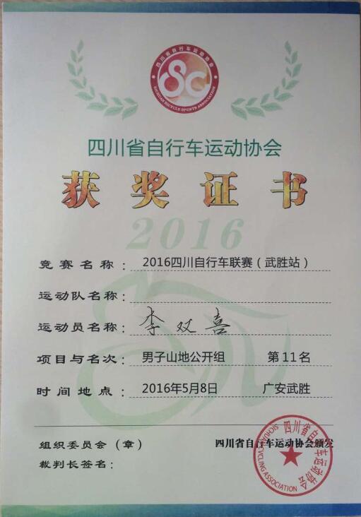 李双喜同学多次参加省级自行车比赛