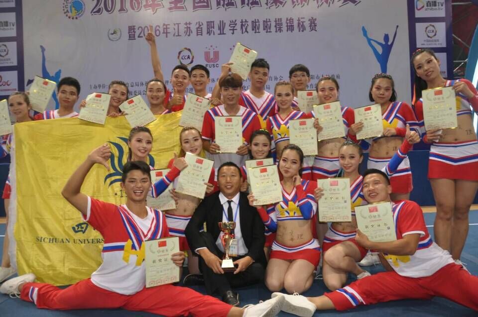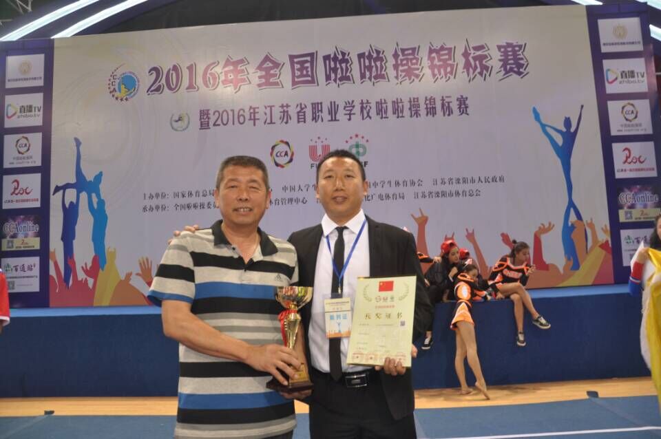 5月19日至23日,“2016年全国啦啦操锦标赛暨2016年江苏省职业学校啦啦操锦标赛”在江苏溧阳奥体国际花园体育馆隆重举行。金年会官网36名学生在董立院长和唐绪明老师的带领下参加了比赛,并在两个比赛项目中荣获了第一名。