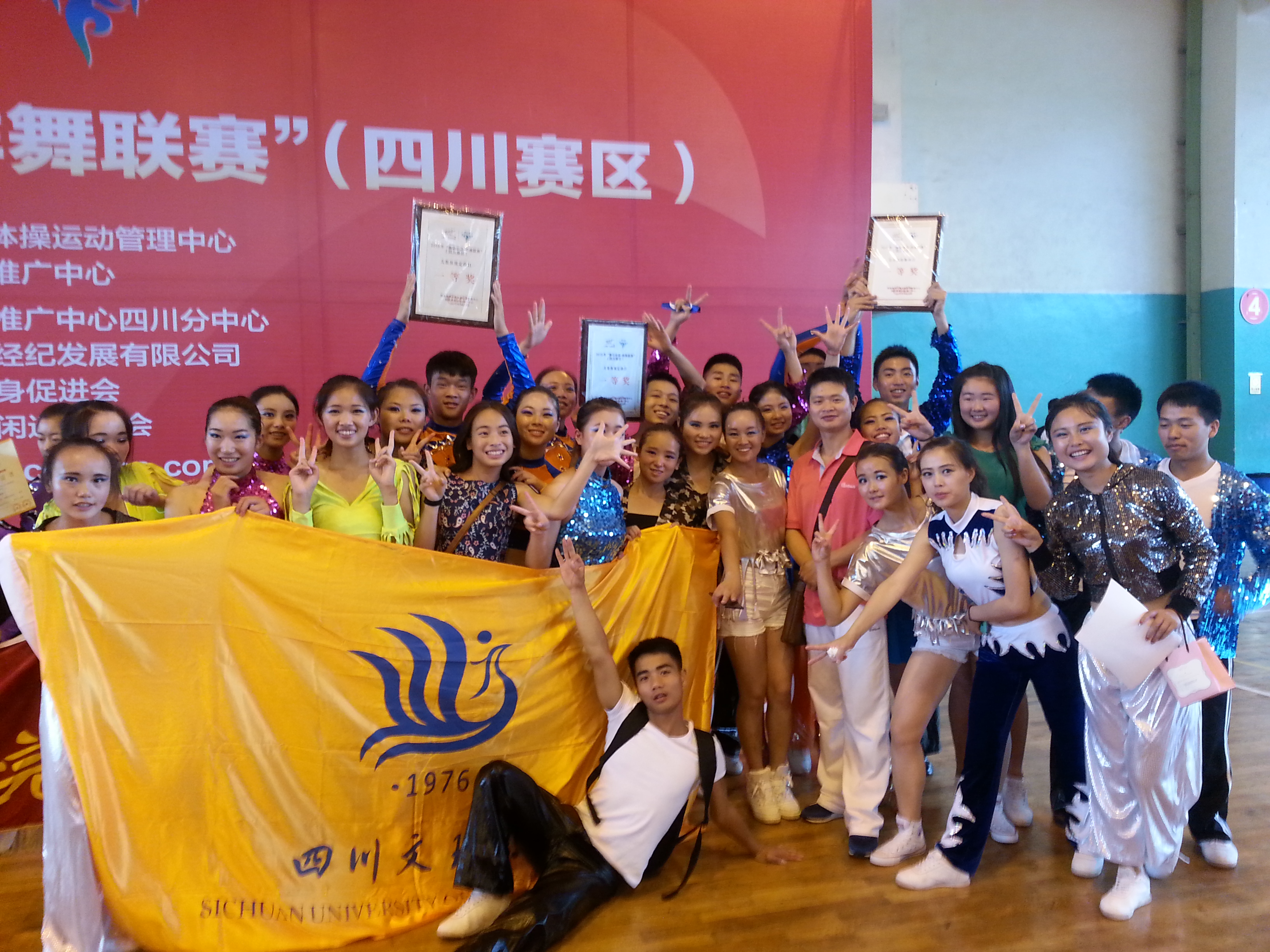 5月30日至5月31日,2015年“舞动中国—排舞联赛”(四川赛区)在成都金年会jinnianhuicom隆重举行。金年会官网排舞队在冉卫东老师的指导下,经过一个多月的精心准备,艰苦训练,在比赛中荣获普通院校组大集体规定曲目一等奖,公开组自选曲目一等奖,双人规定曲目一等奖和二等奖及体育道德风尚奖。