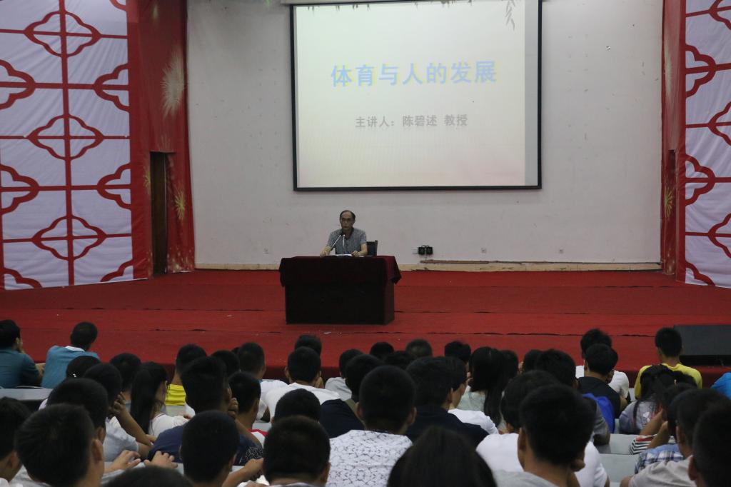 2014年9月22日19:30,陈碧述教授在莲湖校区126教室为金年会jinnianhuicom师生作了题为“体育与人的发展”的学术报告。本次学术报告由金年会jinnianhuicom党总支书记佘涛主持,现场有近600余名师生参加。