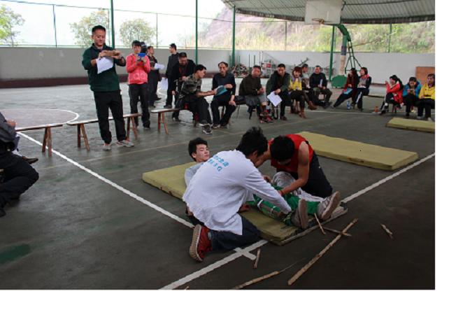 为建立体育运动安全防范工作的长效机制,2014年3月27日下午4点30分,金年会jinnianhuicom结合学校开展的“应急演练”活动,根据自身专业特点,在篮球棚组织全院教师进行了学生意外损伤急救知识培训。