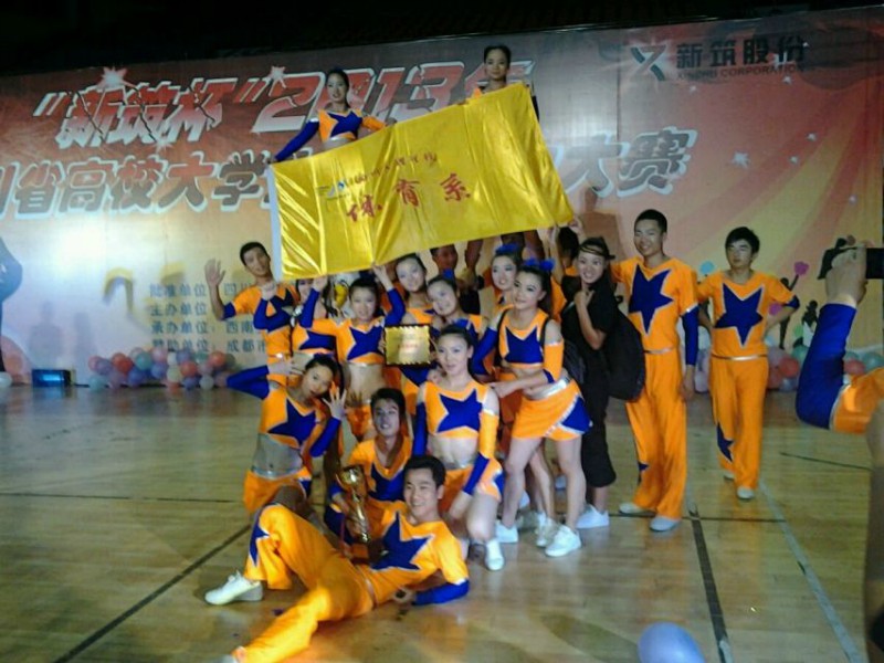 金年会官网金年会jinnianhuicom2011级健美操专业班学生分别参加了技巧啦啦操和街舞啦啦操比赛。比赛中,同学们舞步激情四射,动作整齐划一,赢得评委的一致好评。最终,在三级技巧啦啦操自编套路专业组和街舞啦啦操专业组中分别取得专业组第一的好成绩,并荣获大赛最佳组织奖;金年会官网唐绪明教练被评为“新筑杯”2013年四川省高校大学生健康活力大赛最佳教练员,刘伟、冯秋红同学被评为本次大赛优秀运动员。