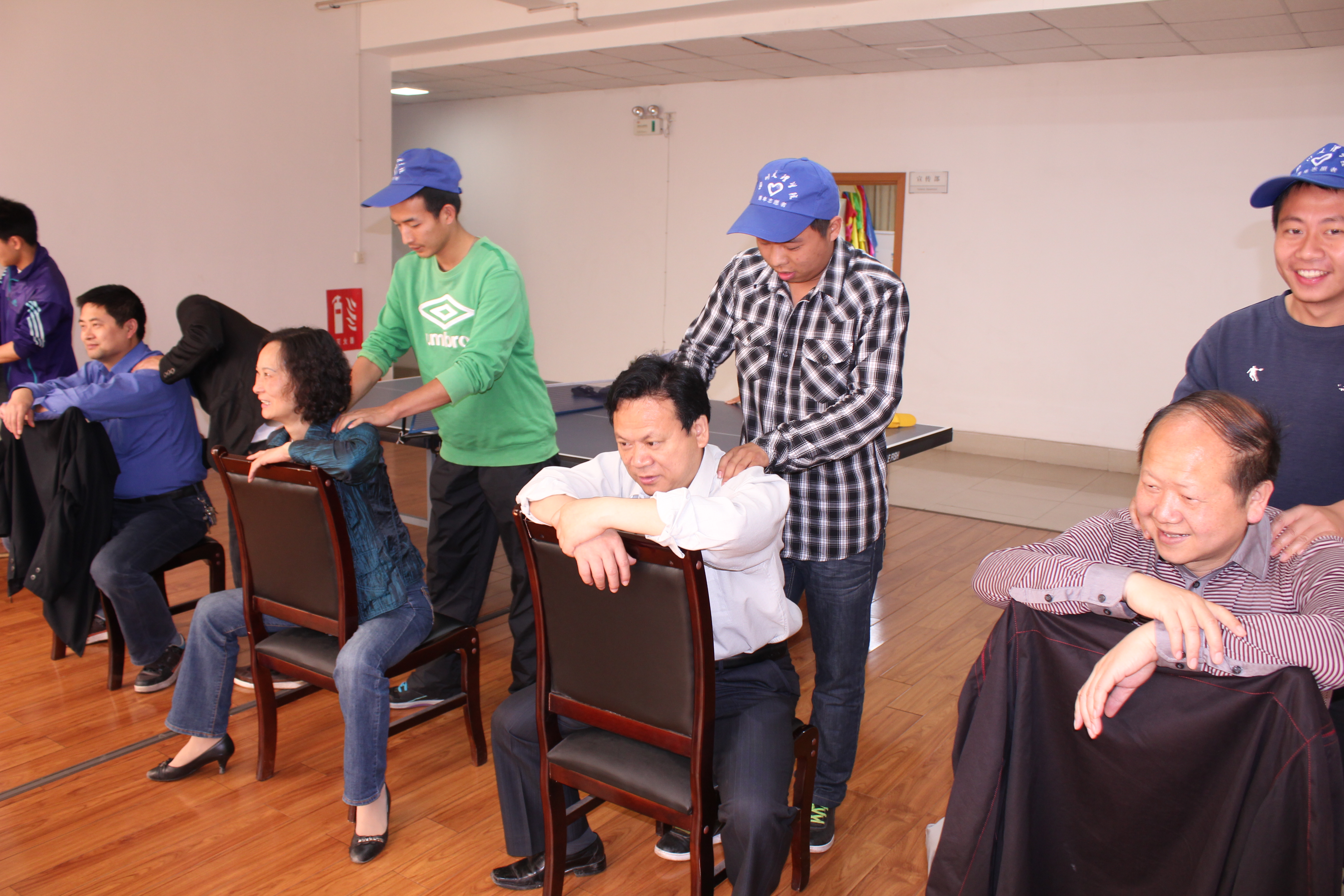 为了加深学生对《推拿与按摩》课程理论知识的学习和掌握,为学生搭建教学实践平台,并针对金年会官网老师在日常生活中勤于工作,缺少锻炼,部分教师肩、颈部都产生疼痛甚至活动不便的现状,4月24日10:00,我系17名同学组成志愿服务队,在莲湖校区的教学楼和行政楼开展了“学习雷锋服务教师保健按摩活动”。本次活动的开展旨在充分运用我系专业特点及优势,将温暖、健康送给学院教师。