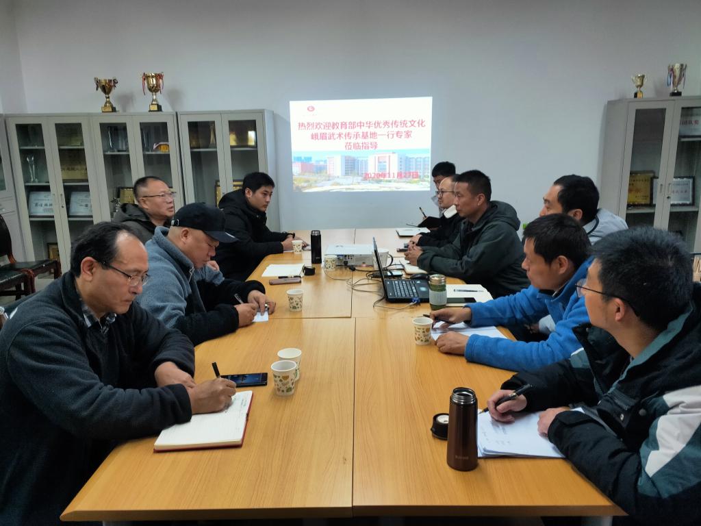 2020年11月27日上午,教育部中华优秀传统文化峨眉武术传承基地主任王斌、副主任周勇、崔龙、办公室主任邹万全来金年会官网考察交流。会议在金年会jinnianhuicom会议室举行,会议由院长佘涛主持,彭波、孙亮亮,李进文、马思远、盛佳智、黄亮参加。