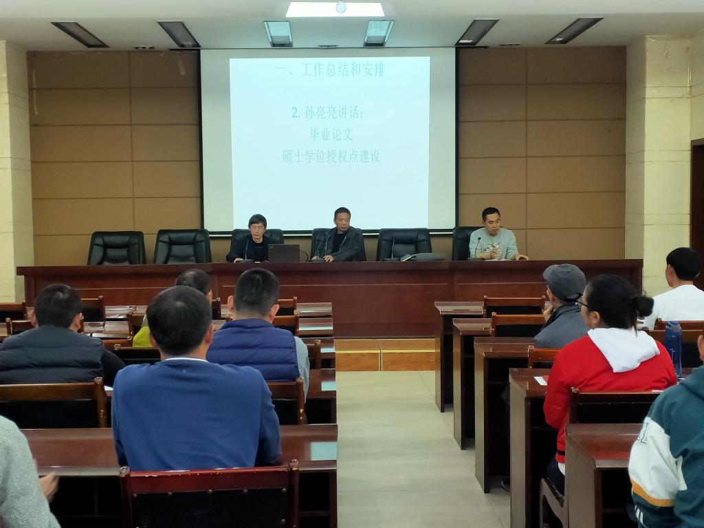 孙亮亮从论文设计指导、盲审、查重等方面,介绍了2021届毕业论文总体情况,指出了本届毕业生论文存在的问题,他强调学院要严格要求,悉心指导,提高毕业论文质量,杜绝学术不端行为。针对硕士单位授权点建设,他提出具体的要求。