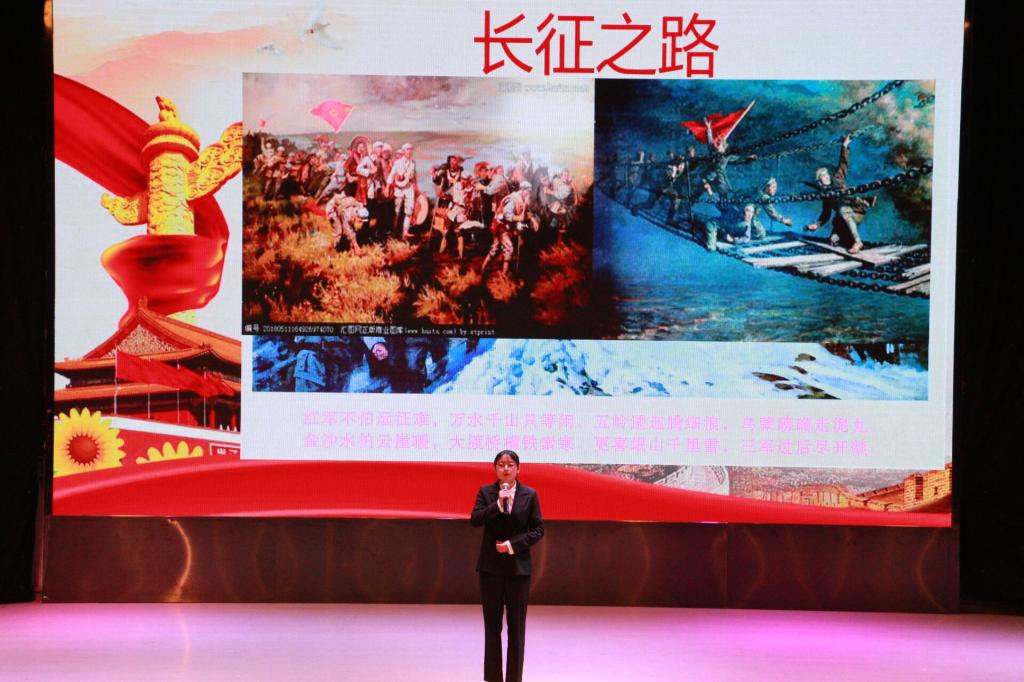 经各班初赛推荐,团总支学生会组织复赛,最终有10位同学进入本次决赛。在比赛中选,手们精神饱满、感情充沛、自信十足。《强健体魄,传承红心》表达了广大学子努力学习,强健体魄,传承革命精神的决心;《与党同行》描绘了党从无到有、从小到大、从弱到强的壮美诗篇;《不忘初心,继往开来》展现了中国共产党带领全国各族人民不畏艰辛、科学谋划、攻克难关,取得了脱贫攻坚战全面胜利的伟大历程;《巴山军魂》讲述了红军战士血战巴山,不畏艰苦、不畏牺牲的精神品质;《金色的鱼钩》叙述了长征途中一位炊事班班长接受并完成党组织交给的任务,照顾三个生病的小战士过草地,而牺牲了自己的故事,表现了红军战士忠于革命、舍己为人的高贵品质……经过激烈的比赛,2020级1班朱梦婷,2019级1班唐悦两位选手并列获得此次比赛第一名。