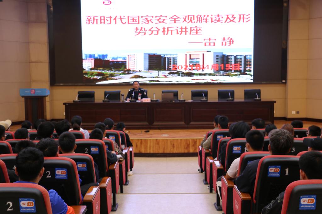 2021年4月15日19:00,达州市公安局政治安全保卫支队长雷静同志应邀在莲湖校区学术报告A厅作了《新时代总体国家安全观解读及形势分析》的专题讲座。金年会jinnianhuicom全体教职工,2018级、2019级、2020级学生参加了此次讲座。讲座由王兆忠主持。