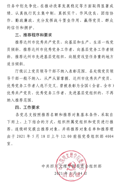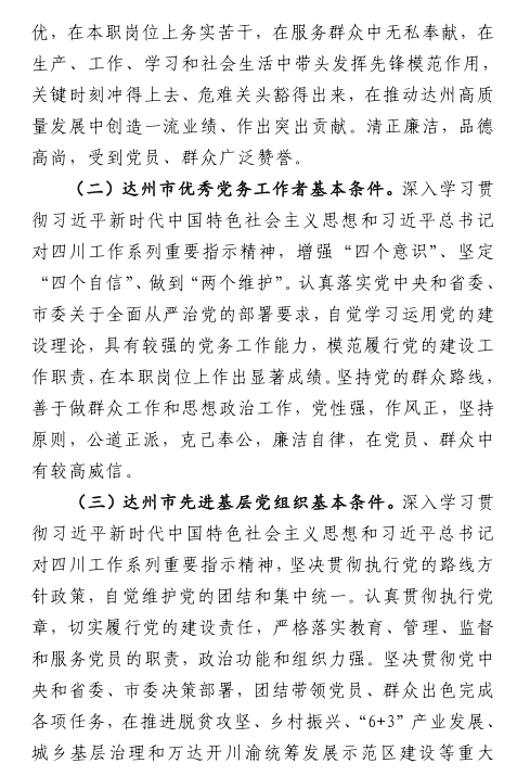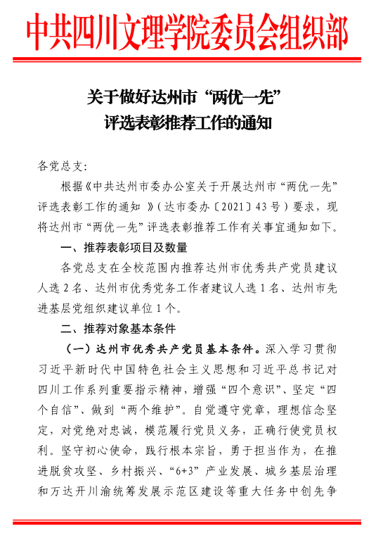 关于做好达州市“两优一先”评选表彰推荐工作的通知