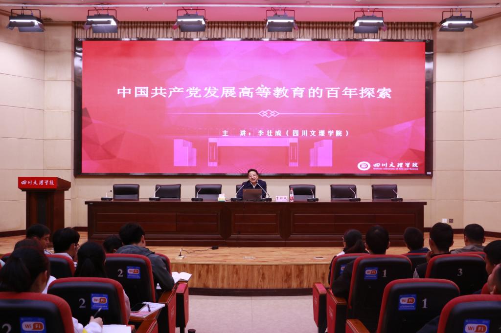 4月19日晚,学校党委常委、副校长李壮成同志到学院为全体师生做党史学习教育宣讲,此次讲座主题为“中国共产党发展高等教育的百年探索”。学院党总支书记王兆忠主持了宣讲会,学院全体教职工、2019级和2018级全体学生参加了宣讲会。
