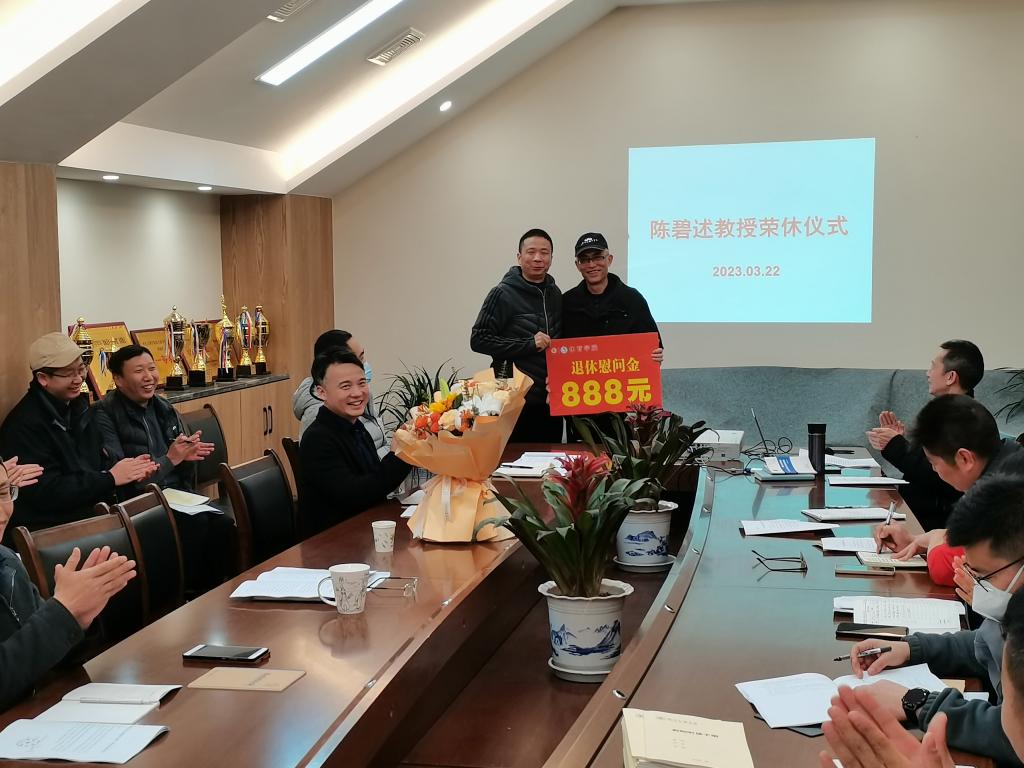 3月22日,金年会jinnianhuicom在体育馆117会议室为学院陈碧述教授举行了荣休仪式。仪式由党委书记王兆忠主持,学院全体教师参加了此次活动。