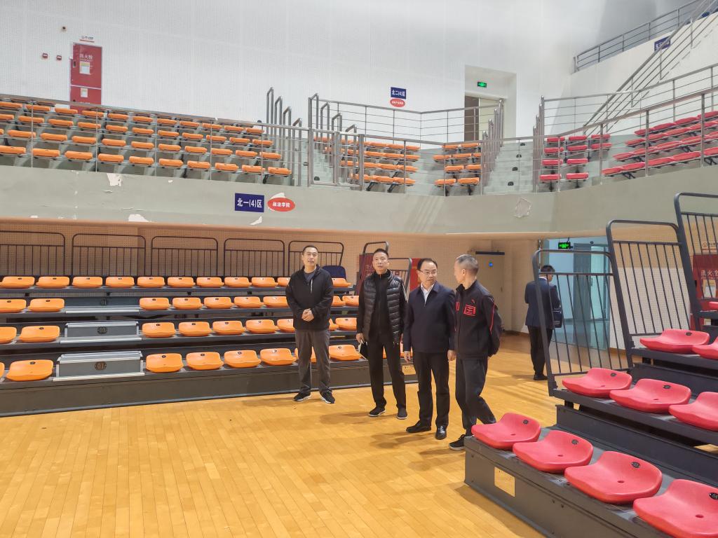帅胤首先对学院的师资、教学、科研、人才培养等情况进行了了解,他指出,当前正是学校申硕攻坚的关键之际,学院要从大局出发,在高层次人才引进、高级别项目申报、高水平成果产出等方面努力推动,力争再上新台阶。随后,他深入现场查看了体育场地、器材以及设施。帅胤就体育场馆安全高效利用提出指导意见,他强调,一是要强化安全意识,对场地设施定期进行检查,发现安全隐患及时排除。二是按规定为师生开放运动场地,以满足师生的日常锻炼需求。三是要充分调研,准确分析师生对运动场地的需求,为日后场地的建设提供准确的意见。