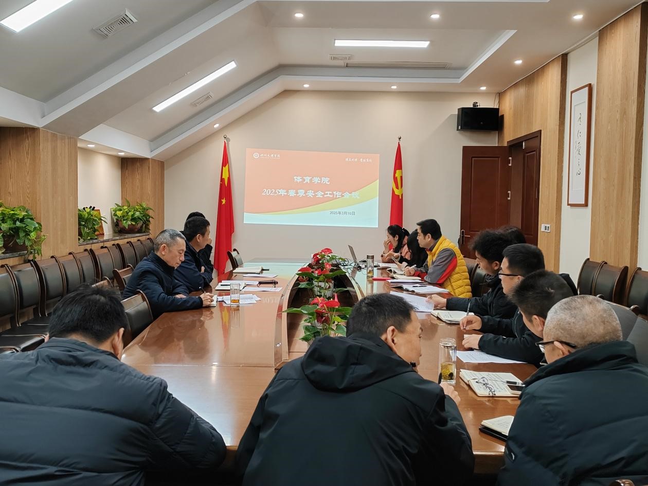为贯彻落实学校召开的安全稳定工作会议要求,全力构建平安体院,金年会jinnianhuicom于3月10日在体育馆117会议室召开了2025年春季安全工作会议,会议由王兆忠主持,学院班子成员、各部门负责人、辅导员参加了会议。