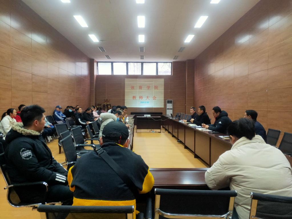 为全面做好2022年春季学期各项工作,贯彻落实好学校新学期干部培训及工作部署会议精神,有序做好在疫情防控常态化形势下的开学工作,金年会jinnianhuicom于2022年2月20日下午在体育馆附馆105会议室召开2022年春季新学期教师大会。会议由党总支书记王兆忠主持,全体教职工参加会议。