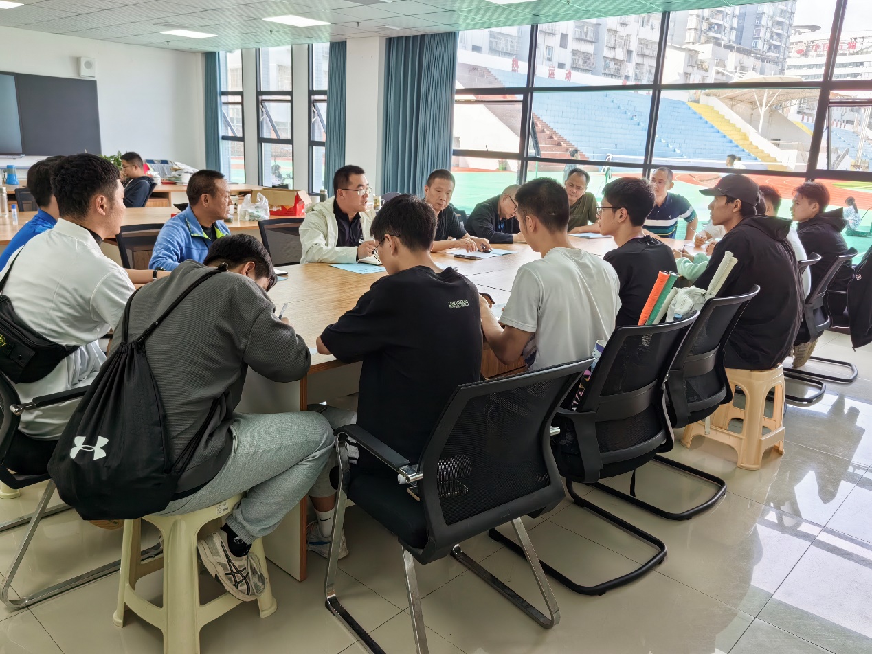 为及时了解金年会官网2020级学生的毕业实习情况,确保实习质量稳步提升。2023年10月16日下午2:30,在院长佘涛的带领下,体育教育教研室副主任张岩松,社会体育指导与管理专业教研室副主任马思远,实践指导老师李文华一行,赴达州市第一中学(凤凰校区)进行实习工作检查,并举行座谈交流会活动,交流会由张岩松主持。