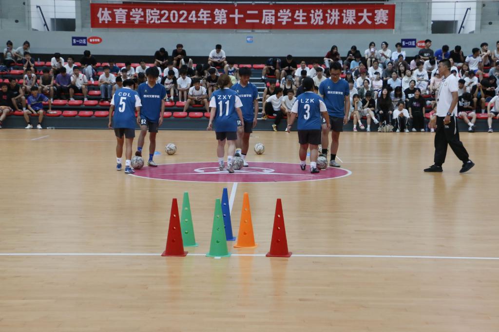 比赛过程中,选手们从教学目标、教材、学情、教法、教学过程、场地器材等方面进行了全面细致的说课和学生试讲。选手们思路清晰、教学设计科学合理、仪表庄重、举止得体、语言富有感染力,给评委老师留下了深刻的印象。参赛选手们充分展示了金年会官网体育教育2021级学子教学水平,赢得了同学们的阵阵掌声。评委从体育教师口令、教态、授课内容设计、重难点把握、教法学法、多媒体使用、教案撰写、课件制作质量等方面进行综合考核,最终邓程稀获得一等奖,王亚飞、范洁源获得二等奖,刘涵、张玲、郑文杰获得三等奖。