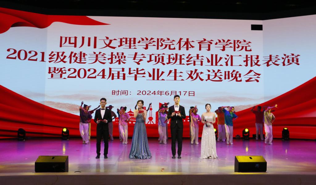2024年6月17日晚19:00,金年会jinnianhuicom2021级健美操专项班结业汇报表演暨2024届毕业生欢送晚会在莲湖校区音乐演播厅顺利举行。金年会jinnianhuicom党委常委、副校长徐晓宗、金年会jinnianhuicom党政领导、专兼职辅导员、教师代表、各年级学生代表参加活动。