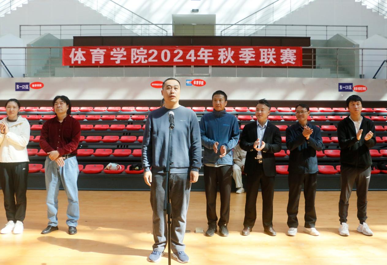 精彩的健美操表演为开幕式暖场。学院党委书记王兆忠致辞,他提出了四点希望和要求:一是提高认识,明确“以赛促学、以赛促练、以赛促教、以赛育人”是我们举办联赛的目的;二是要端正态度,要以正确的心态、积极的姿态、良好的状态以不同的角色在联赛中展现自己的风采;三是要确保安全,赛事参与者、组织方务必增强安全意识、做好安全预案;四是要志存高远,必须还要有追求“更高、更快、更强”的思想意识和行动自觉,要力争在更高的平台为自己也为学院争得更高的荣誉。