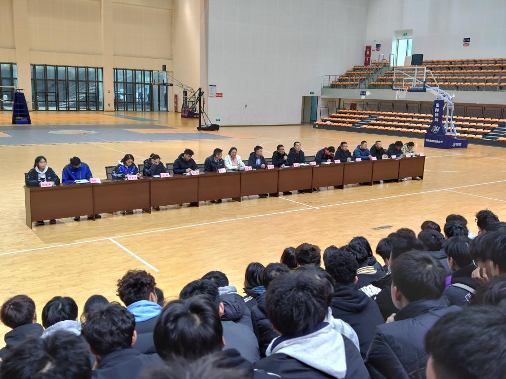 会上,体育教育教研室主任张岩松对2023级体育教育专业学生教学基本功的集训和比赛做了介绍。他指出,此次基本功训练为期12周,涉及篮、足、排、体操、武术、田径六个项目。集训和比赛是学院优化人才培养路径、提升人才培养质量的重要举措,旨在全面提升学生的教学能力。专项训练结束后,将随机抽选学生参加最后的比赛。训练期间,专门派有学院领导督查,专任课教师和大三志愿者学生指导。他强调,为了确保训练纪律与效果,参训学生要端正态度,严肃纪律,积极参与,刻苦训练。