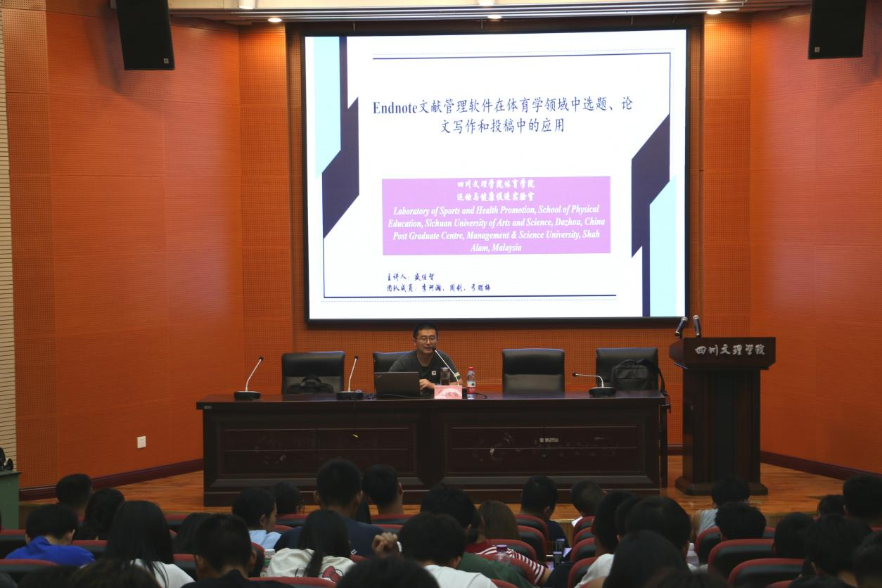 2024年5月30日,盛佳智副教授在文理学院学术报告B厅作“Endnote管理软件在体育学领域中的选题和投稿中应用”的学术讲座,金年会jinnianhuicom学李珂瀚老师主持,学院部分教师、2021级全体学生到场聆听。