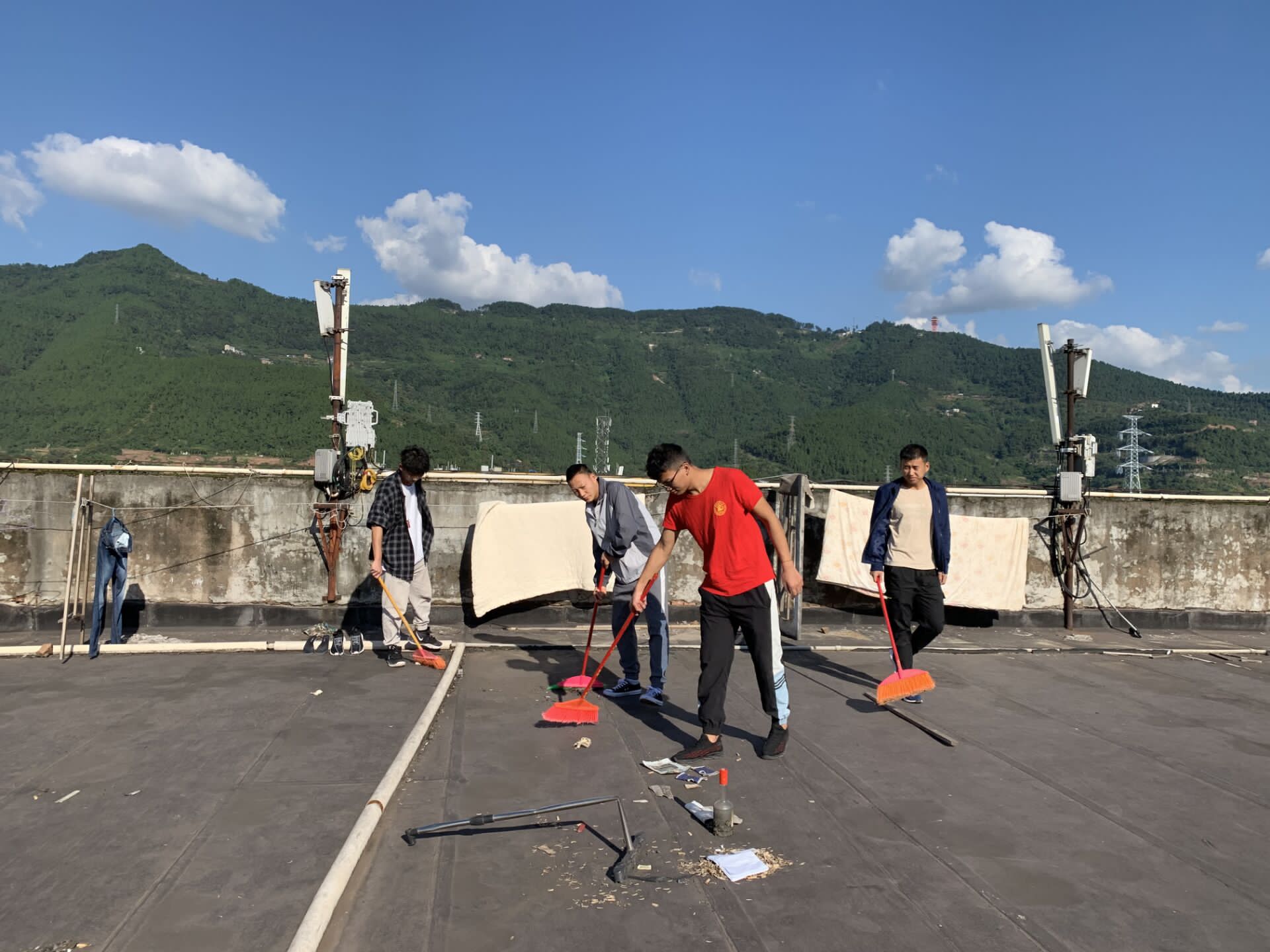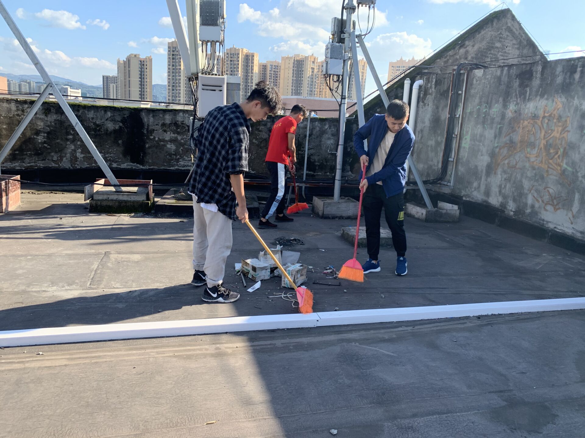金年会jinnianhuicom由马思远老师带队,劳生部带领金年会jinnianhuicom劳动志愿者分组对九舍进行清洁,主要针对公寓天台、楼道、走廊、学习室窗户、消防栓等边边角角进行排查,清扫。坚决做到地面无垃圾,无积水,过道墙砖明亮干净,无小广告等。同时,大力宣传“四城同创”和文明公寓的工作要求,倡导大家共建共享更加美好生活的环境。
