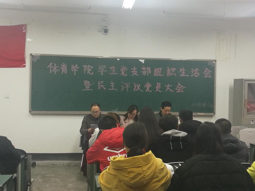 金年会jinnianhuicom学生党支部于2019年3月13日16:20在文传楼3022教室举行了组织生活会暨民主评议党员大会。会议有学校党委组织部副部长李红梅、金年会jinnianhuicom党总支副书记兼学生党支部书记王进、学生党支部支委成员彭波与石姣娜、辅导员崔开文及金年会jinnianhuicom学生党员参加。