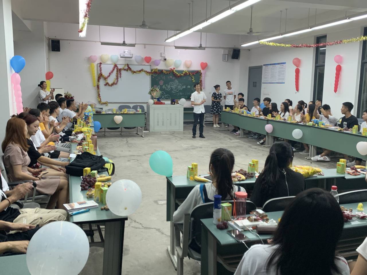 气球、彩带、鲜花把文传楼教室装点一新,同学们品着月饼,吃着水果,载歌载歌,相互交流。操场上同学们,席地围坐,赏月聊天,游戏玩乐,不亦乐乎。学院领来到各班送上了节日的慰问。王兆忠表达了对同学们的祝福和关心,他鼓励同学们保持积极乐观的学习态度和生活方式,尽快适应文理的学习和生活,开启精彩的大学生活。希望大家在中秋之际与家人保持联系,让家长放心。佘涛也表达了对新生的热烈欢迎和真挚的关心,他说:”金年会jinnianhuicom的同学们都是一家人,同学们要适应新的环境,有什么问题要及时和老师同学沟通,学院的老师就是同学们坚强的后盾!祝大家节日愉快!”