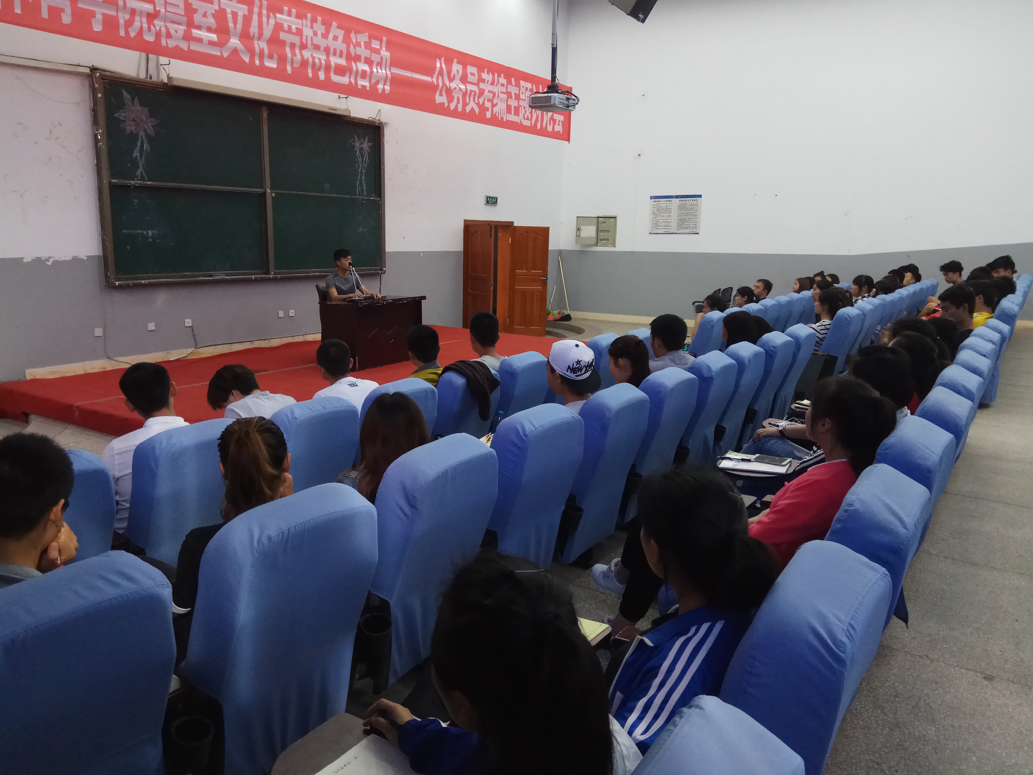 本次活动是学院本届寝室文化节系列活动之一,邀请了学院在公招考试中取得较好成绩的毕业班学生向学弟学妹传授考试经验,参会同学们表示对复习思路有了清晰的认识,收获很大。