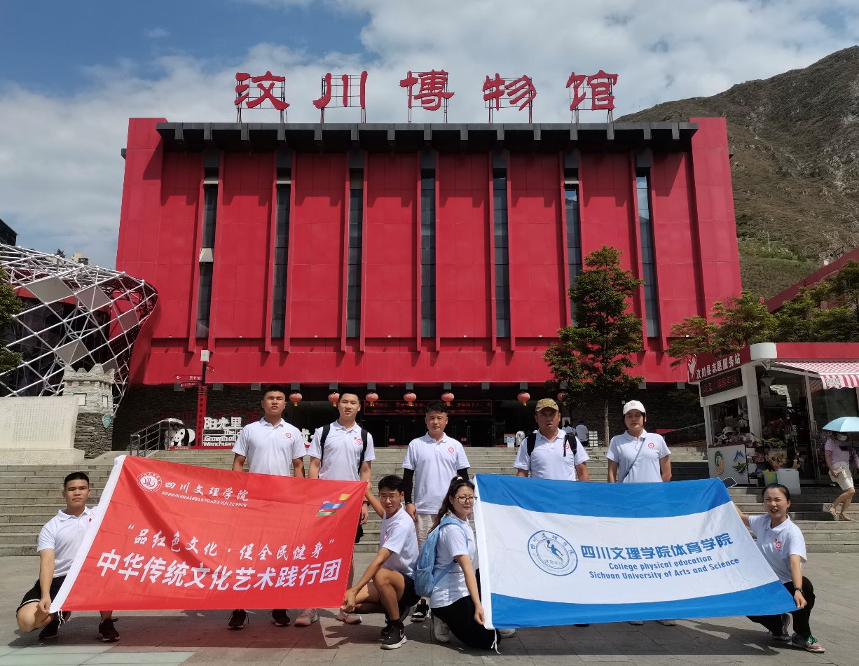 为弘扬红色精神,推广全民健身,在中国共产主义青年团成立一百周年之际,金年会jinnianhuicom金年会jinnianhuicom“中华传统文化艺术践行团”于2022年8月18日至8月22日在四川汶川、都江堰和成都锦江区开展了为期5天的社会实践活动。践行团前往爱国主义教育基地体验红色文化,深入居民健身中心广场和社区调研全民健身开展情况、宣传全民健身相关知识。