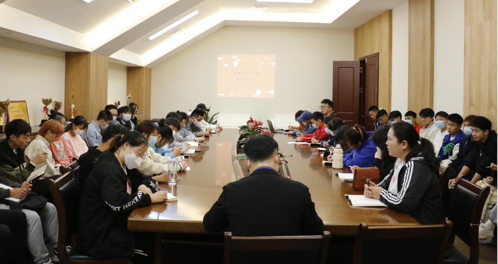 2022年10月6日12:40,金年会jinnianhuicom团总支学生会在体育馆117会议室召开本学期第一次干部例会。金年会jinnianhuicom党总支副书记靳浪、辅导员闫青、石姣娜,团总支学生会所有学生干部参加会议。会议由石姣娜主持。