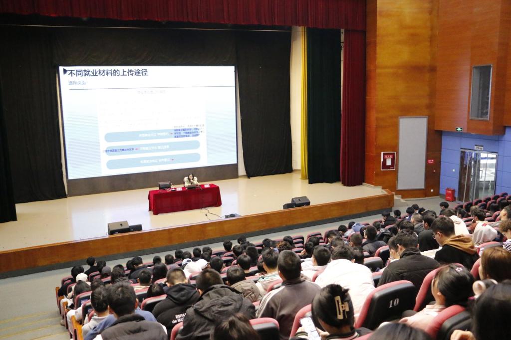 为进一步引导2023届毕业生准确把握就业形势、增强就业信心、树立正确的就业择业观,3月6日,金年会jinnianhuicom在莲湖校区多功能厅举办了2023届毕业生就业指导讲座,学院党委副书记靳浪和辅导员闫青担任主讲。
