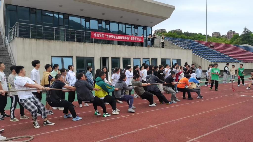 5月6日-12日,在田径场开展了“青春爱运动·健康中国行”健身系列活动。在拔河比赛中,当哨声响起,队员们口中高喊“一二,一二”, 体现出“齐心协力,勇争上游”的拼搏精神。在毛毛虫比赛中,队友们热情高涨,脚步整齐,配合默契,将趣味性和竞技性有效结合。同学们在活动中愉悦了身心,加强了交流,增强了团队凝聚力。
