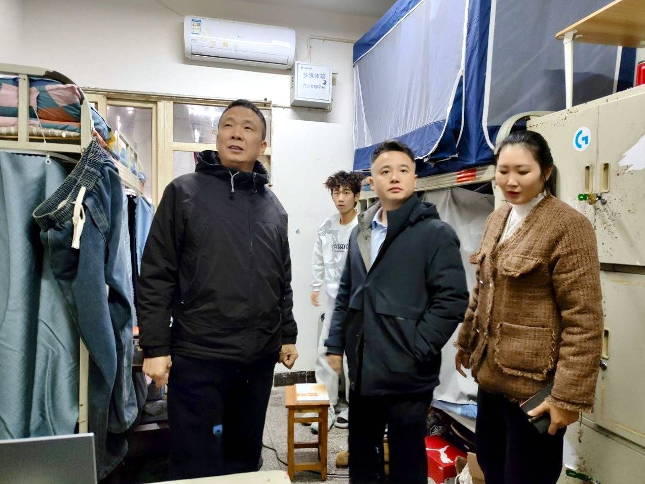 走访过程中,学院领导一行重点检查了各寝室用电安全与卫生状况,针对存在的安全隐患和内务问题现场提出整改要求,叮嘱同学们严格遵守公寓管理制度,共同维护安全整洁的居住环境,养成良好的生活习惯。每到一间寝室,走访人员都与学生亲切交流,详细了解假期见闻及新学期的学习规划,要求大家及时调整作息规律,以饱满的精神状态投入专业学习。党委书记王兆忠强调,优良的寝室文化是学风建设的重要基础,希望同学们互帮互助,携手打造积极向上的成长空间。