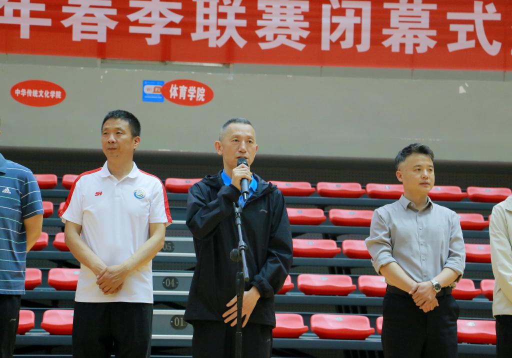 闭幕式当天,学院党政领导、专项教师、专职辅导员及师生代表共同出席。党委副书记靳浪宣读表彰决定,参会领导、老师为优秀裁判员、获奖团队及运动员逐一颁发荣誉证书。学院党委书记王兆忠致闭幕辞并宣布闭幕,他指出:“体育赛事不仅是竞技的舞台,更是锤炼意志、凝聚团队精神的育人课堂。希望全体师生以此为契机,在竞争中磨砺品格,在协作中提升境界。”
