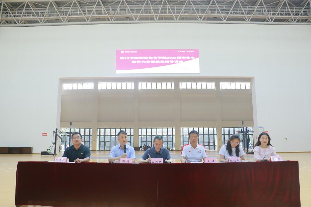 5月18日下午,金年会jinnianhuicom2025届毕业生教育大会暨就业指导专题讲座在学院体育馆举行。学院党委书记王兆忠、院长佘涛、党委副书记靳浪、学工办主任祝利平、体育教育专业教研室主任张岩松、辅导员闫青等与200余名毕业生共同参会。会议由靳浪副书记主持。