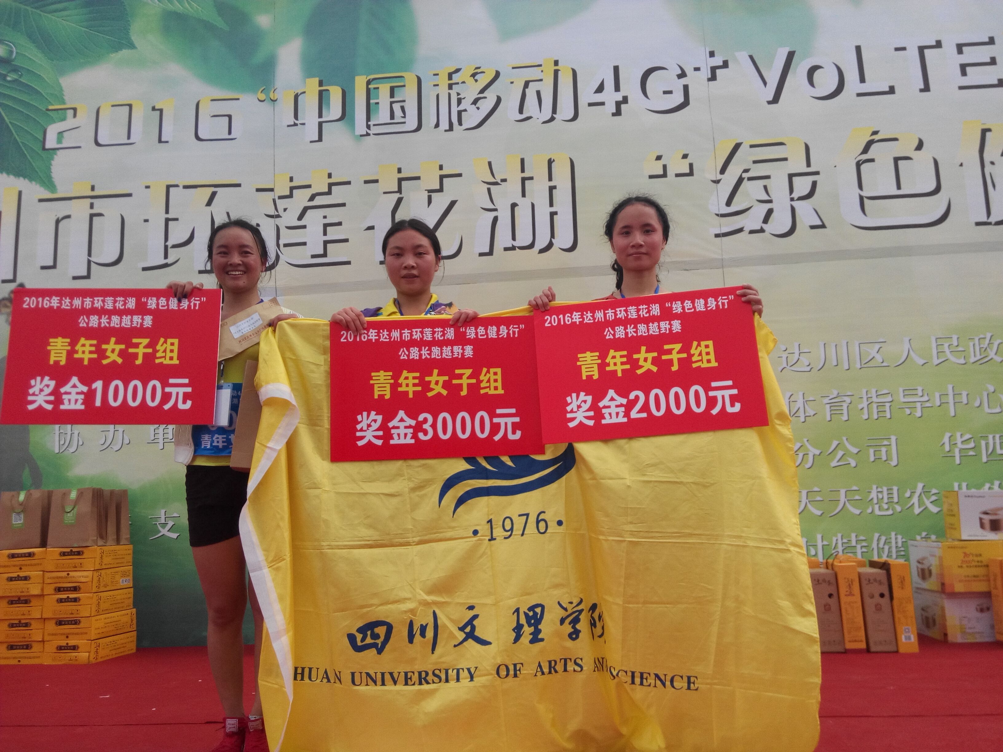 4月15日上午,2016达州市环莲花湖“绿色健身行”活动在莲花湖巴山大剧院广场隆重拉开帷幕,金年会官网领导高度重视,组织了50名优秀选手报名参加了长跑越野项目的青年组比赛。2015级6班王菊、樊小霞、2014级8班鲁伍呷包揽了女子组前三甲;2013级8班李攀同学荣获男子组第三名。
