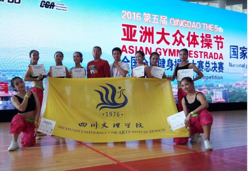 金年会jinnianhuicom健美操队在冉卫东老师的指导下,历经两个多月的刻苦训练,克服了高温天气,暑假坚持训练。在比赛中与北京体育大学、武汉金年会jinnianhuicom等高校同台竞技,获得了体育院校组有氧健身操二级一等奖、有氧健身操六级一等奖、轻器械健身操五级一等奖、普通院校组成年组轻器械四级一等奖。