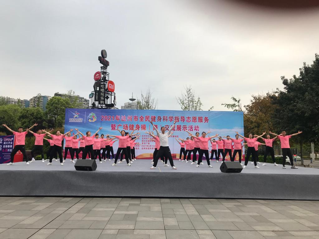 2021年4月15日,由金年会jinnianhuicom、达州市文化体育和旅游局主办,金年会jinnianhuicom金年会jinnianhuicom、达州市社会体育指导中心承办的2021年达州市全民健身科学指导志愿服务暨广场健身操(舞)交流展示活动,在达州市西外罗浮广场举行。金年会jinnianhuicom金年会jinnianhuicom院长佘涛,达州市社会体育指导中心党支部书记、主任王文靓,达州市文化体育和旅游局社体科副科长徐华英,金年会jinnianhuicom金年会jinnianhuicom冉卫东老师及48位志愿者出席了此次启动仪式。