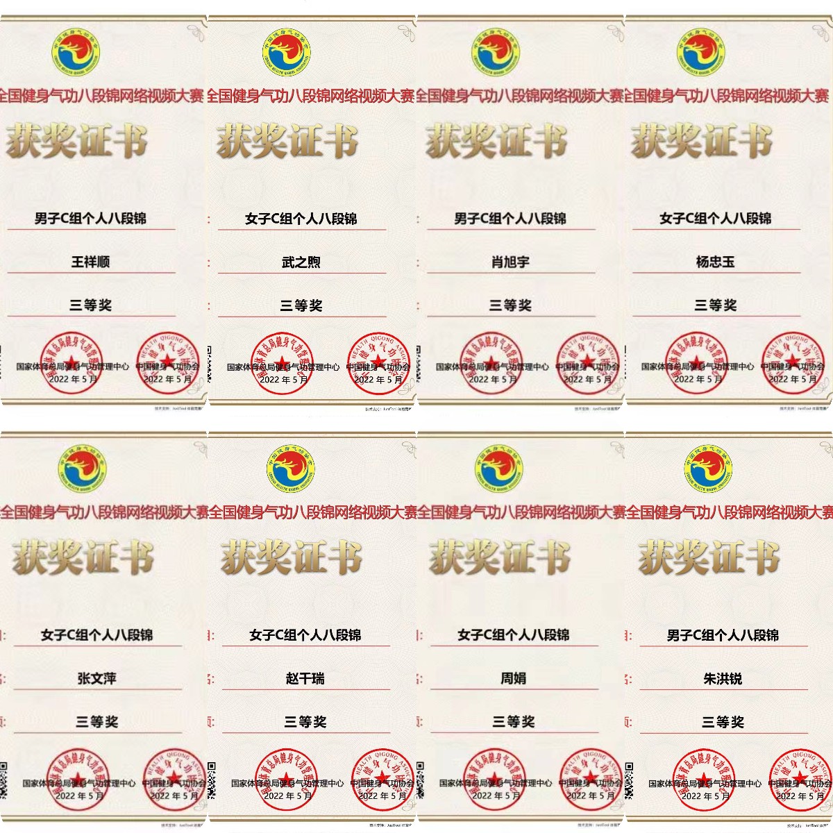 为深入贯彻落实国务院印发的《全民健身计划(2021-2025年)》和中办、国办印发的《关于构建更高水平的全民健身公共服务体系的意见》,体现金年会jinnianhuicom课程改革和人才培养的成果,切实提高学生的专业竞赛能力与综合素养,于2022年5月15日,金年会jinnianhuicom代表队参加了由国家体育总局健身气功管理中心、中国健身气功协会共同主办的《2022年全国健身气功八段锦网络视频大赛》。