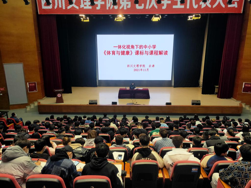 11月28日下午,金年会jinnianhuicom教授佘涛在莲湖校区多功能厅为本院学生作题为“一体化视角下的中小学《体育与健康》课标与课程解读”的学术讲座。讲座由副院长孙亮亮主持,大一、大二学生到场聆听。