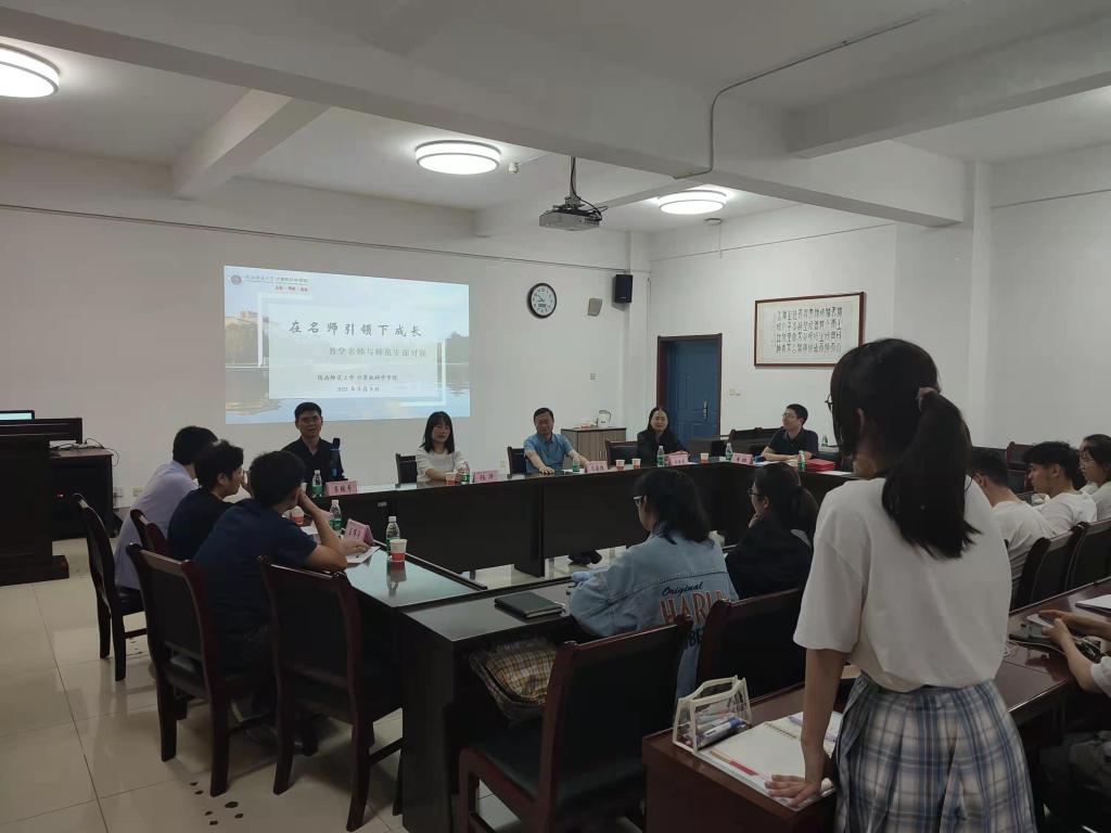 为庆祝我国第37个教师节,践行“赓续百年初心,担当育人使命。”的教师节主题,传承弘扬我校“西部红烛”精神,进一步推动学院公费师范生教育事业发展,yL23411永利官网登录于2021年9月9日在文津楼3412报告厅开展了“在名师引领下成长:教学名师与师范生面对面”交流活动。活动特别邀请了来自yL23411永利官网登录附属中学的任晓鹏老师、西北大学附属中学的朱丽花老师、长安一中的陈华老师和西北工业大学附属中学的吕张号老师。本次活动由永利官网李鹏副院长主持,参加活动的还有永利官网范虹、张麦侠、刘博、王伟宇四位老师以及19级、20级公费师范生。