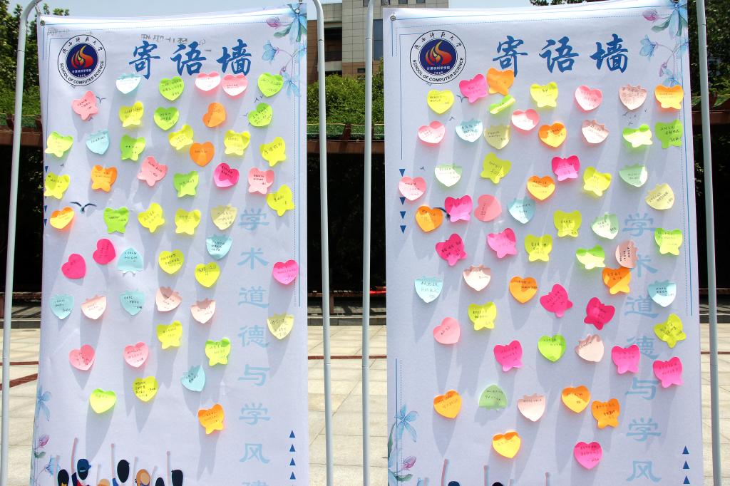 2019年5月17日中午,“学术道德与学风建设寄语墙”活动在阳光苑广场开展。活动现场悬挂起“守规守范做学术,笃诚笃信正学风”的标语,各学院同学们纷纷驻足观看,并积极参加到活动中来。同学们通过亲自书写、张贴自己的寄语及宣言,将诚信科研的观念内化于心,外化于行。