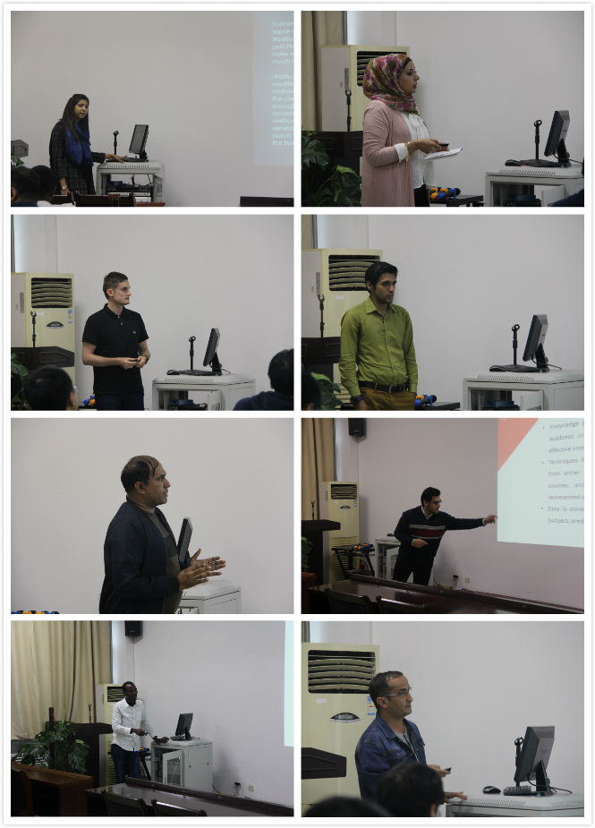 首先黄昭介绍了评审会议程及整体安排。随后留学生依次汇报自己一年中的学习及科研进展情况,参会评委对他们进行了逐一点评。会后与会教师与学生合影留念。