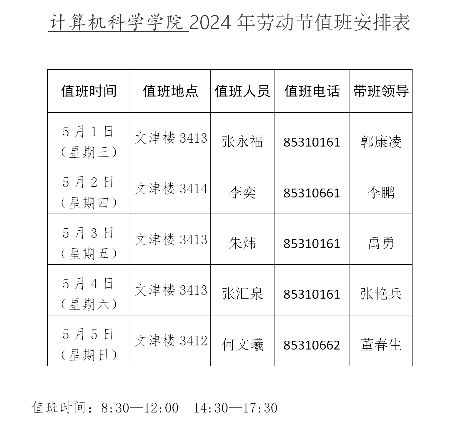 yL23411永利官网登录2024年劳动节值班安排表
